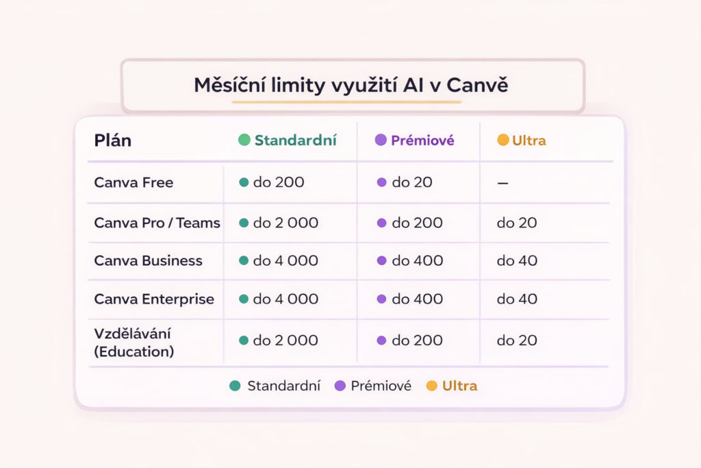 👉 Ani Canva Pro neznamená neomezené používání AI